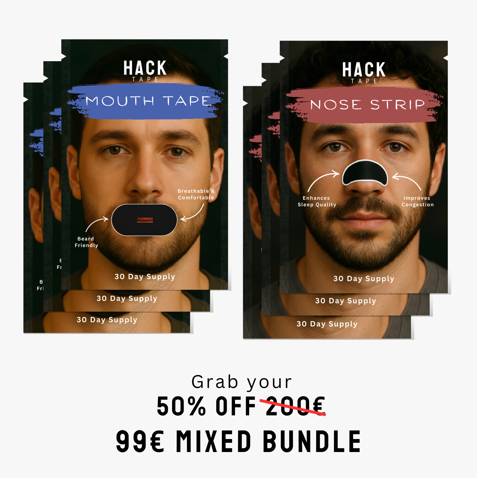 HackTape stands out because of its premium materials, strong yet skin-friendly adhesive , and its reliable hold — even through an entire night of sleep. Many nasal strips lose their grip or irritate the skin. HackTape was designed to solve those problems, offering comfort, performance, and breathability without compromise. Once you try it, you'll feel the difference.